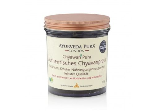 Chyawan Pura ist das reinste, beste und köstlichste Chyavanprash, das wir kennen. Nicht umsonst ist es 2013 mit dem "Great Taste Award 2013" ausgezeichnet worden. Dieses köstliche Kräuterfruchtmus wird nach einem traditionellen Originalrezept aus dem Ayurveda hergestellt und besteht aus über 30 Früchten, Kräutern und Gewürzen. Hauptzutat ist die Amlabeere.