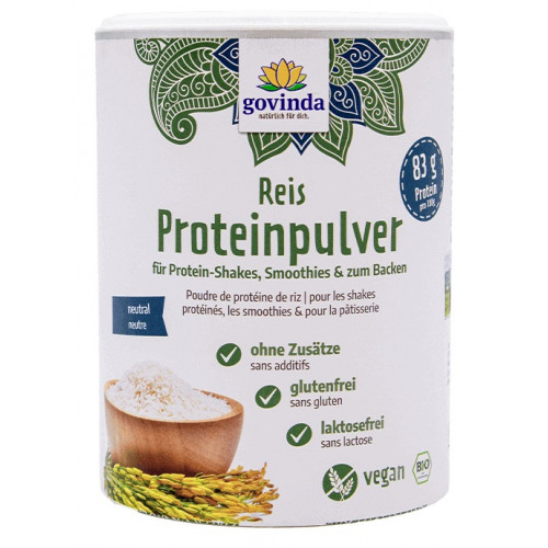 Das ideale Produkt für alle Sportler und Menschen, die eine natürliche Protein-Quelle und einen hohen Proteingehalt suchen. Brauner Reis wird mit einem schonenden Verfahren verarbeitet. Das daraus entstehende Pulver ist von Natur aus vegan und reich an pflanzlichem Protein. Im Vergleich zu anderen Protein-Pulvern ist Reis-Protein sehr neutral im Geschmack. Dadurch lassen sich leckere Protein-Shakes und sogar Mahlzeiten zaubern. Darüberhinaus ist das Reis-Proteinpulver kein Nahrungsergänzungsmittel sondern ein richtiges Lebensmittel. Denn es enhält keine künstlichen Vitamine, Zusatzstoffe, Süßstoffe oder gentechnisch veränderte Organismen. Eben ganz natürlich.