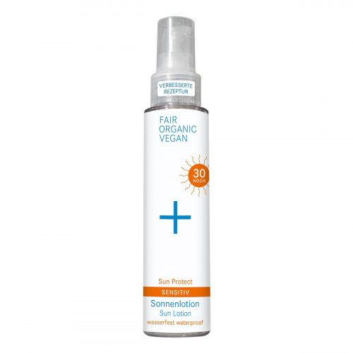 Die wasserfeste Sun Protect Sonnenlotion Sensitiv bietet einen sicheren, mineralischen UVA/UVB-Schutz mit Lichtschutzfaktor 30 auch für empfindliche Hauttypen. Sensible Haut pflegt sie sanft mit reizarmen Bio-Inhaltsstoffen und schützt sie gleichzeitig vor Sonnenbrand.