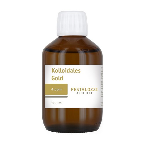 1 x 200 ml "Kolloidales Gold - Pestalozzi Apotheke" in lichthemmender Apothekerbraunglasflasche