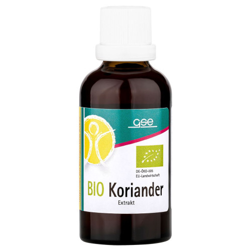 GSE Koriander wurde mit einer Bio-Zertifizierung ausgezeichnet. Mit GSE Koriander-Extrakt kaufen Sie somit beste Bio-Qualität. Das Koriander-Extrakt wird durch ein schonendes Verfahren mit Bio Alkohol gewonnen. Die wertvollen Inhaltsstoffe des Korianders bleiben dadurch erhalten. Koriander Tropfen werden häufig in Kombination mit der Grünalge Chlorella verwendet.