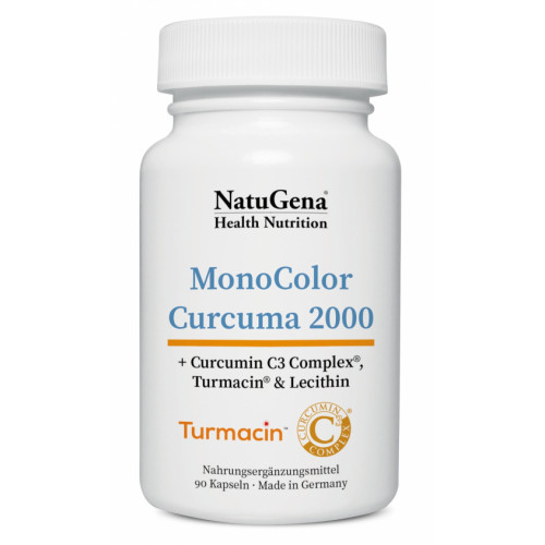 MonoColor Curcuma 2000 ist ein einzigartiger Curcuma-Komplex aus vier hochqualitativen Curcumaformen. Das Produkt beinhaltet Curcuma-Pulver (Bio), Curcumin C3 Complex®, Curcumin-Polysaccharid Turmacin® und Curcuma-Extrakt.