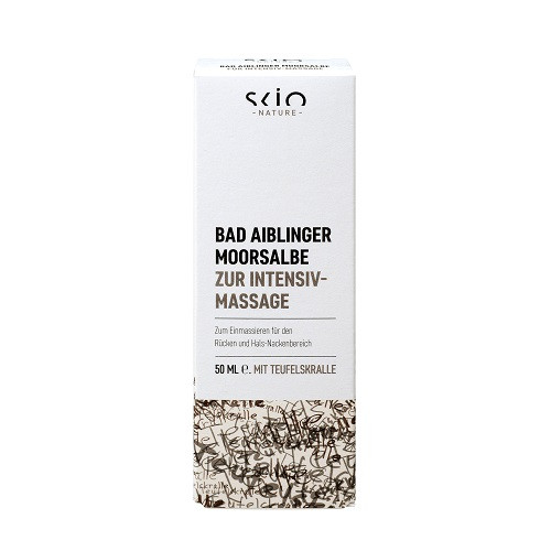 SCIO Bad Aiblinger Moorsalbe zur Intensiv-Massage 50ml enthält Torf (Moor), Weidenrinde, Teufelskralle, Arnika, Rosmarin und Jojoba-Öl, ist BDIH-zertifiziert und entspricht damit den Richtlinien für kontrollierte Naturkosmetik. Die Salbe ist frei von synthetischen Duft- und Farbstoffen, frei von Mineralölderivaten, frei von PEG und die Rohstoffe stammen vorzugsweise aus biologischem Anbau. Mit wertvollen natürlichen Inhaltsstoffen Heilmoor zusammen mit Weidenrinde, Teufelskralle, Arnika, Rosmarin & Jojoba-Öl ist die Salbe speziell zum Einmassieren bei Verspannungen im Schulter- & Rückenbereich und bei schwach durchbluteter Haut. Durch die feuchtigkeitsspendenden Bestandteile ist die Moorsalbe auch ein ideales und schnell einziehendes Pflegemittel für trockene und strapazierte Haut.