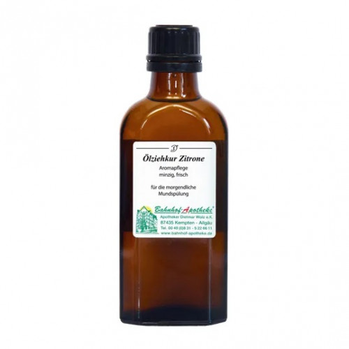 2 Esslöffel der Aromamischung im vorderen Teil des Mundes wie ein Bonbon lutschen und durch die Zähne ziehen. Nach ca. 10 Minuten wird das stark aufemulgierte Öl ausgespuckt. Danach den Mund gründlich ausspülen und die Zähne putzen.