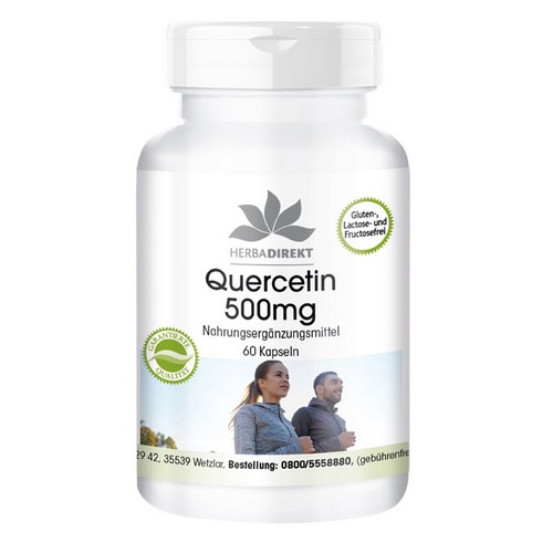 Quercetin, Reisstärke, Überzugsmittel Hydroxypropylmethylcellulose (Kapselhülle), L-Leucin, Baumwollsamenöl