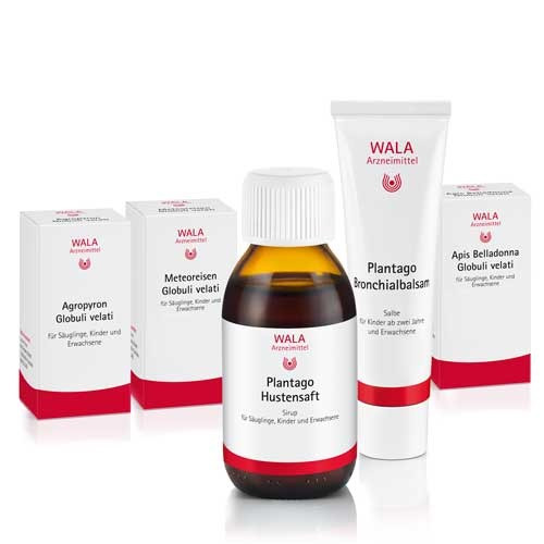 Ist eine Erkältung im Anmarsch können Sie Ihre Abwehrkräfte mit Wala Globuli Meteoreisen velati unterstützen. Bei Husten tragen Wala Plantago Bronchialbalsam und Wala Plantago Hustensaft dazu bei, die Symptome zu lindern. Wala Agropyron Globuli velati helfen, Schnupfen zu lindern. Bei Halsschmerzen unterstützen die Wala Globuli Apis Belladonna die Linderung der Symptome. Das Wala Erkältungsset ist auch für Kinder, in der Schwangerschaft und in der Stillzeit geeignet. Die Wala Produkte können Sie in Ihrer Apotheke bestellen.