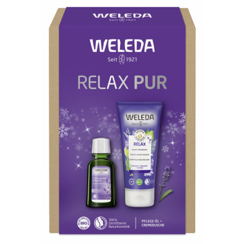 Das WELEDA Geschenkset Relax/Lavendel enthält eine Aroma Shower Relax und ein Lavendel Entspannungs-Öl. Die Aroma Shower Relax reinigt sanft, bewahrt die Hautfeuchtigkeit und Körper und Sinne genießen eine sanfte Erholung. Das Lavendel Entspannungs-Öl ist Pflege und Entspannung für den Körper mit echtem ätherischem Lavendelöl.