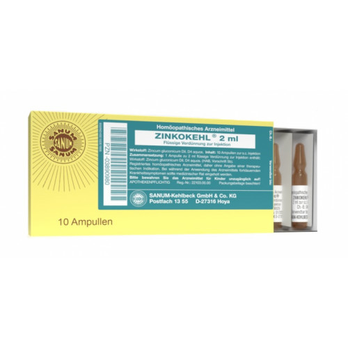 Zusammensetzung: 1 Ampulle zu 2 ml flüssige Verdünnung enthält: 2 ml Zincum gluconicum D4 aquos. dil. (HAB, Vorschriften 5a, 11; D1 mit gereinigtem Wasser).
